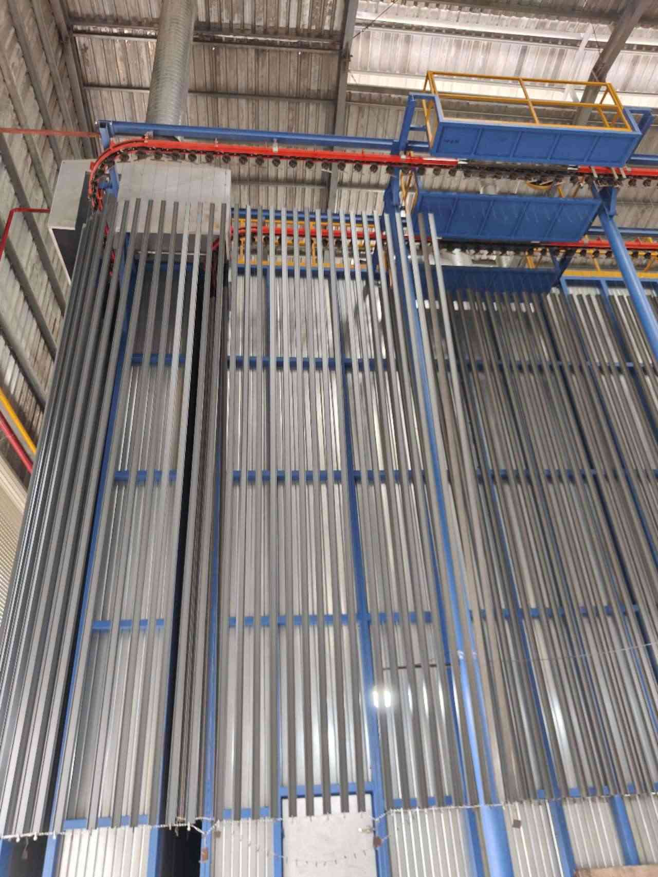 Feature:Automatic Vertical Powder Coating line for Aluminum Profile Surface Treatment Equipment.Save gas and Energy,save space.High quality,high productivity, smooth and durable coating.
